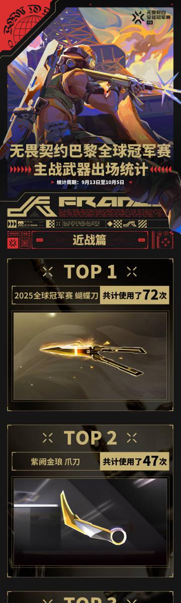 2025年《无畏契约》巴黎全球冠军赛刚刚落下帷幕,这场汇聚全球顶尖选手的赛事不仅带来了精彩纷呈的对决,更向我们展示了职业选手们对武器皮肤的独特偏好。经过详细统计,本次赛事中选手使用频率最高的三款主战武器皮肤分别是:『盖亚的复仇 狂徒』、『侦察力量 幻影』和『2025全球冠军赛 蝴蝶刀』。